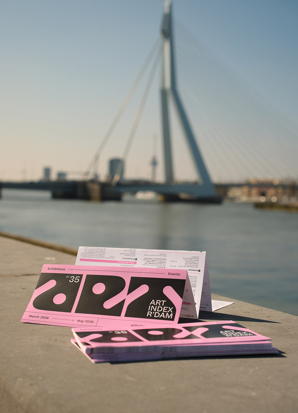 Art Index Rotterdam is an exhibition listings calendar in English for selected contemporary art galleries, institutions and project spaces in Rotterdam. Founded in 2017. The printed version is available four times a year free of charge at all listed venues and some public places in Rotterdam.